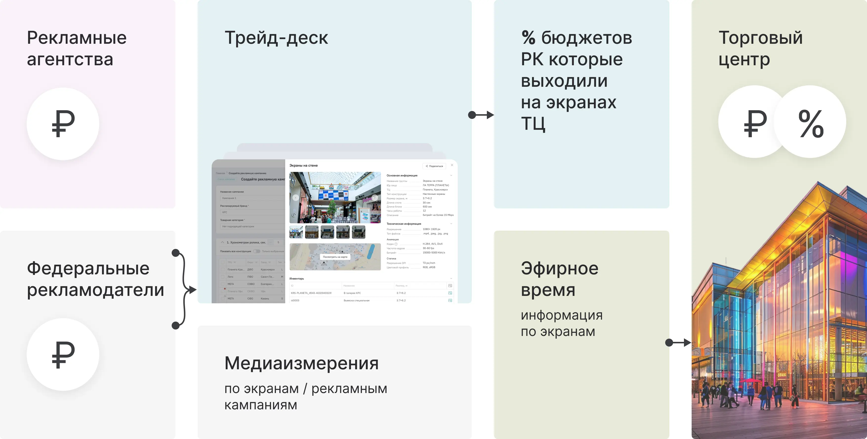 Система для арендаторов и рекламных агентств, которая позволяет размещать рекламу и управлять кампаниями в ТЦ.
